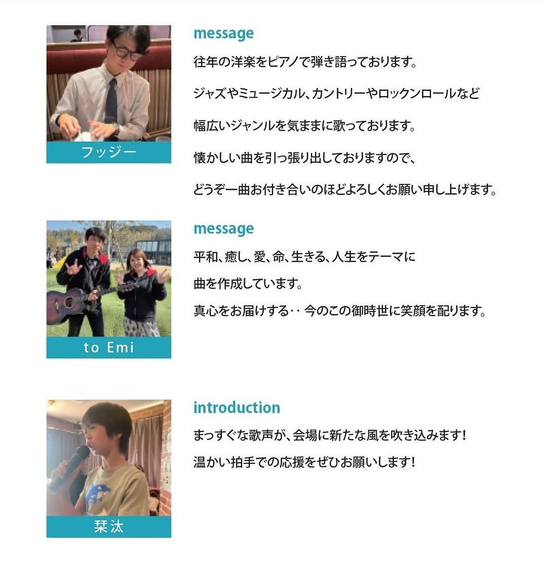 食やモノづくりを楽しみながら、耳にも心にも心地よいひとときをお楽しみください。