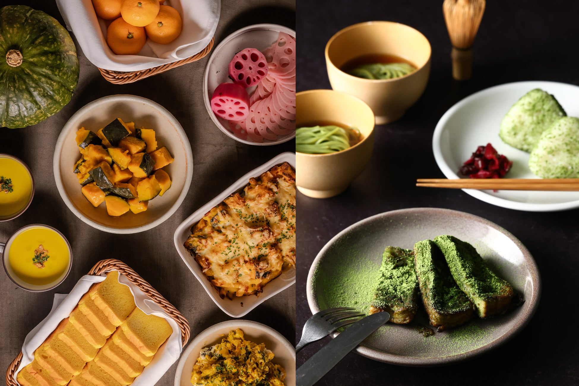 レストラン&バー「KIHARU Brasserie」では、冬至の日に「ん」が付くものを食べると「運が付く」と言われる縁起の良い食材から、かぼちゃ(なんきん)、れんこん、みかんのメニューを期間限定でご提供します。また、朝からがっつり食べたいグリル料理からあっさりいただく和食まで、国内外のゲストの多様なニーズに応える朝食ビュッフェに、より京都らしさを味わえるメニューが登場します。人気の抹茶を使ったメニューに加え、サラダにはまろやかな味わいで京の食文化に欠かせない「千鳥酢」を使用した2種類のドレッシングをご用意します。京都ならではの味わいとともに、旅の思い出に残る朝のひとときをお過ごしください。