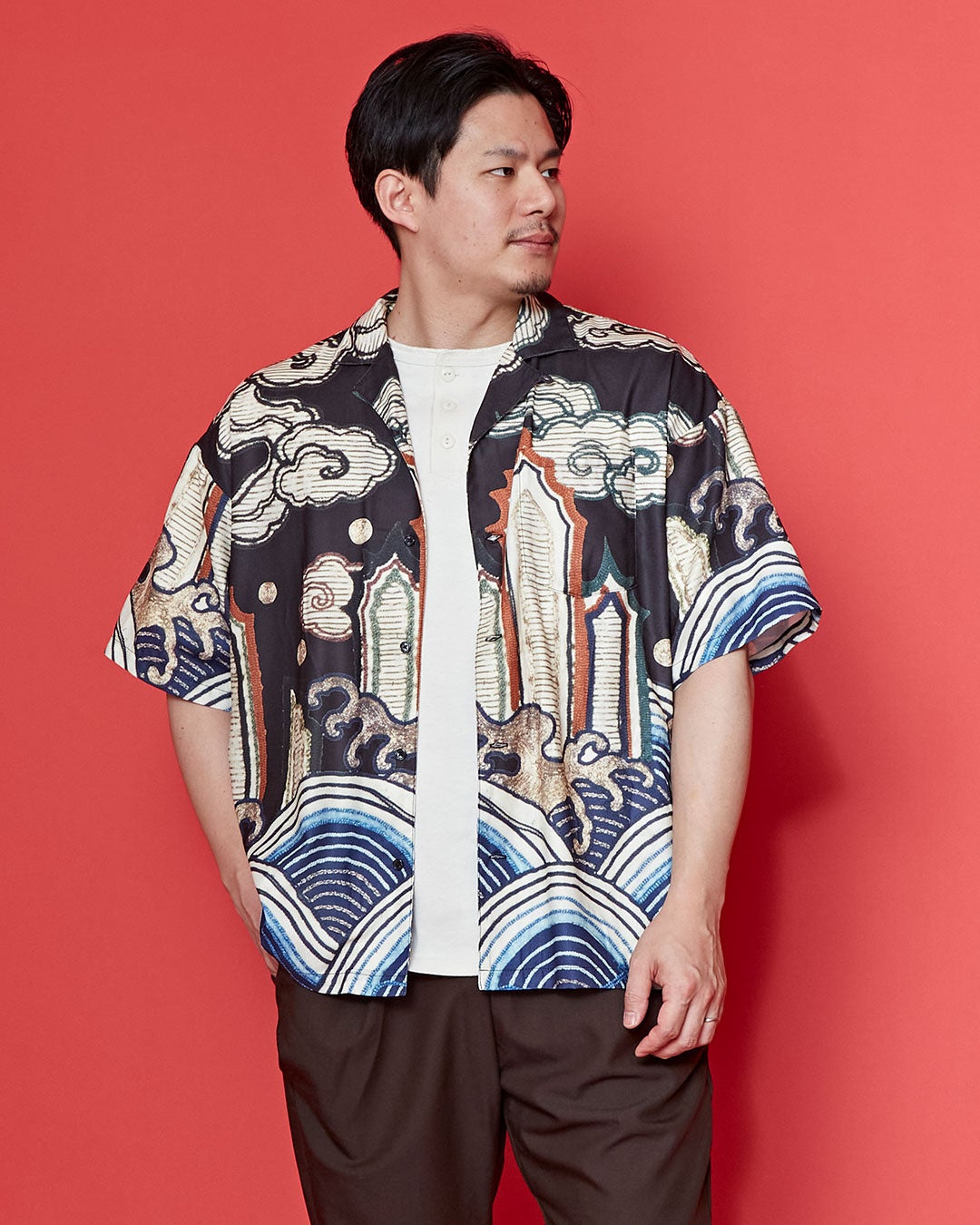 さらりとした着心地の日本風アロハシャツ。ゆったりとしたサイズ感で、羽織りとしても着られる一枚で、男女問わずに着用していただけます。