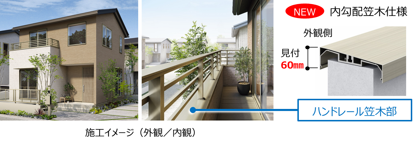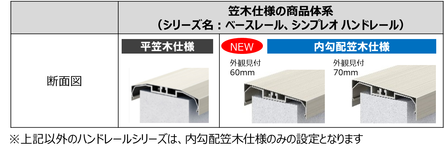 すっきりとした意匠の見付タイプ2種類をラインアップし、市場スタンダードへ ハンドレールシリーズ「内勾配笠木(うちこうばいかさぎ)仕様」リニューアル発売