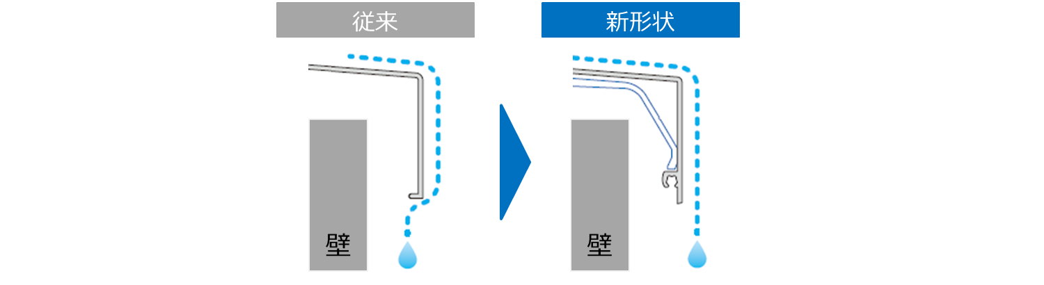 また、このたびのリニューアルに伴い、笠木の端部を雨水が壁を伝わりにくい水切り形状とすることで、住宅の外観意匠を美しく保つことができます。
