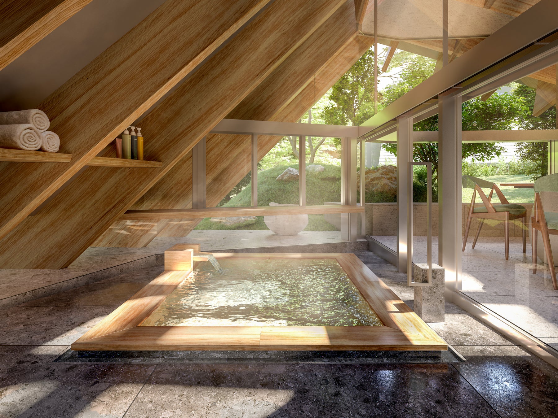 本施設では、地域の魅力を体験しながら過ごせる滞在スタイル「Healing Green」として、「自然を想い、地域と、訪れる人とともに。」というコンセプトを掲げています。草津の自然を感じるサステナブルな空間で、自分を整えるプログラムを監修するのはコンセプトに共感いただいた各分野のスペシャリストが名を連ねる「Healing Green Studio」。心身を整えるウェルビーイング体験を特徴とし、「美容、美食、健康、温泉・サウナ」の4つのカテゴリで設計されています。議論を重ね、自然環境を活かした建築デザインにより、快適性と環境配慮の両立を実現する地域ならではの体験プログラムを創り上げてきました。