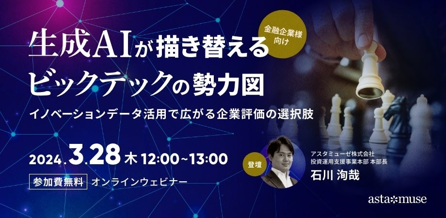 金融機関向け無料セミナー「生成AIが描き替えるビッグテックの勢力図 ~イノベーションデータ活用で広がる企業評価の選択肢~」を3月に再開催