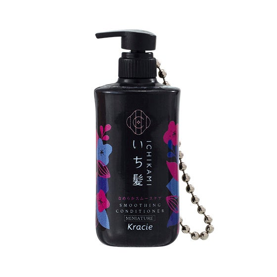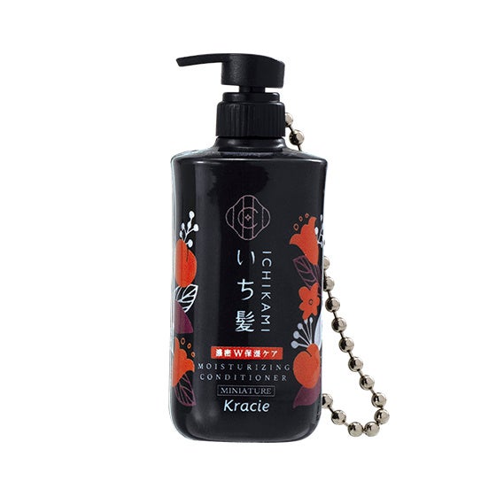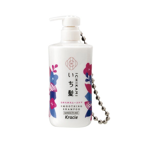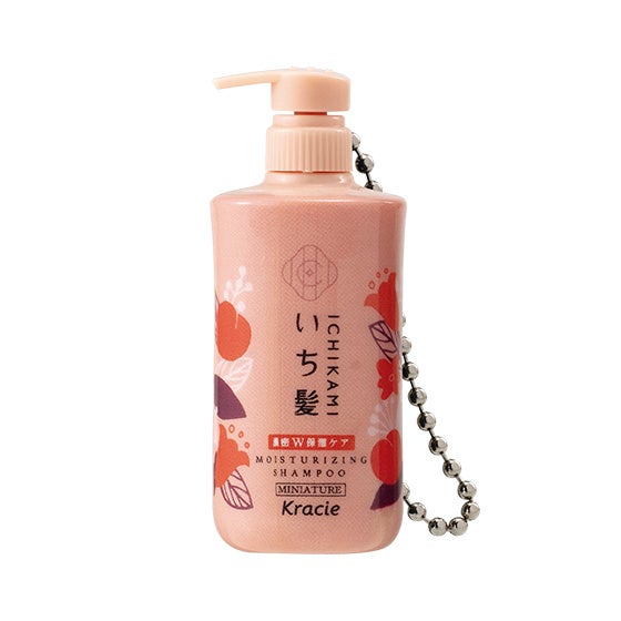 「いち髪 ミニチュアボトルチャーム」は、「いち髪」3ライン(なめらかスムースケア、濃密W保湿ケア、カラーケア&ベーストリートメント)のシャンプー&コンディショナーのボトルを、全高約5.4cm(ポンプを上げた状態。閉めた状態は全高約5.0cm ※いずれもボールチェーンは含まず)のミニチュアサイズで再現したチャームです。