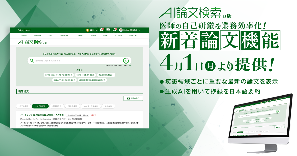 医師の自己研鑽にかかる業務を生成AIで効率化 新着論文機能を4月1日にリリース