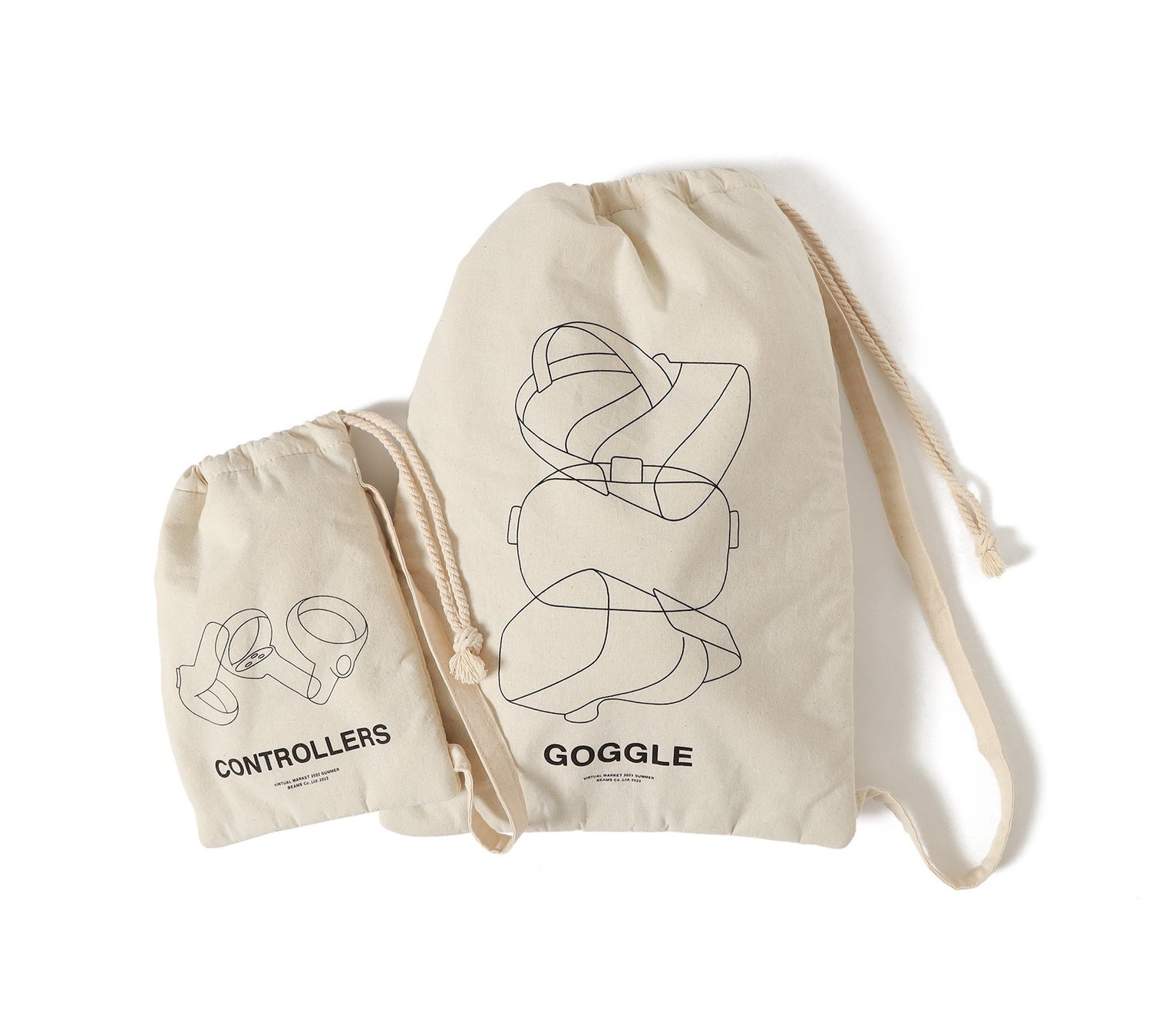初のVRライフスタイルグッズとしてオリジナルで企画したVRゴーグルバッグを、BEAMS公式オンラインショップで販売しています。VRゴーグルとコントローラを収納するバッグはパッド入りで、2つを入れ子にしてまとめて持ち運べます。