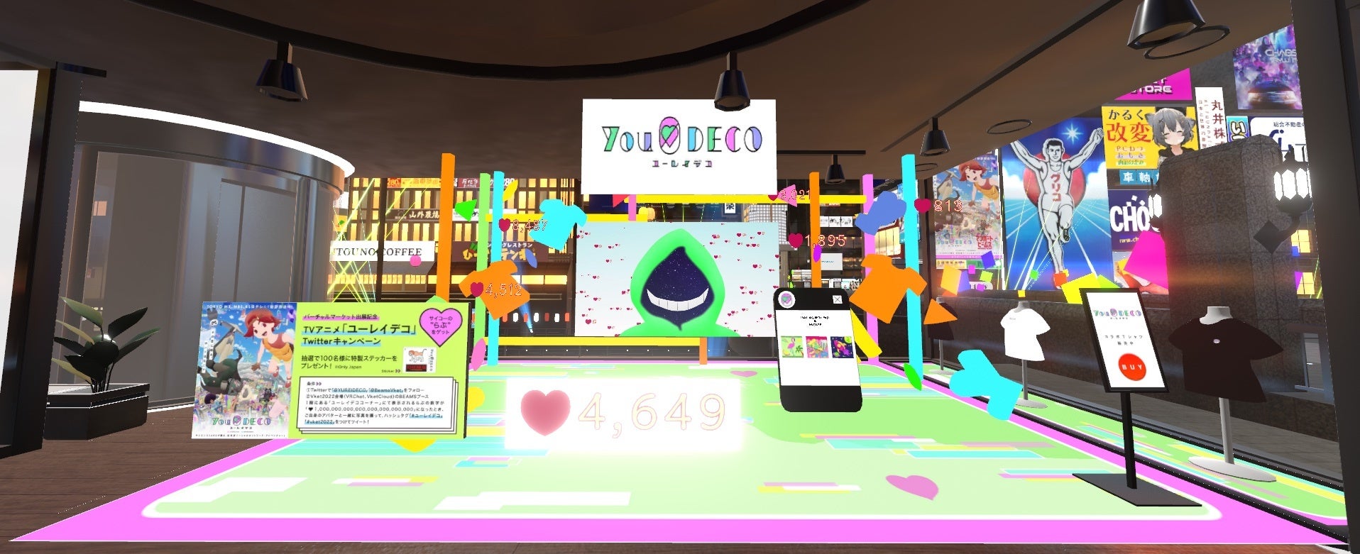 この夏(2022年7月)よりTOKYO MX、MBS、BS日テレでの放送と、クランチロール他で全世界配信中のアニメ「ユーレイデコ」とのコラボレーションで、BEAMSバーチャルショップ1階では、本作の舞台となる情報都市トムソーヤ島をモチーフにしたコーナーを展開しています。作中に登場する「らぶ」が「1,000,000,000,000,000,000,000,000」になるとTwitterキャンペーンに参加できるほか、3DCGで展示されているコラボTシャツ3種のリアル商品は8月28日(日)までBEAMS公式オンラインショップでご注文を受付中です。