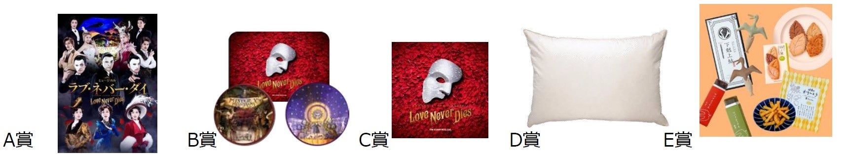 A賞:「ラブ・ネバー・ダイ」S席ペアチケット(2月16日 上演分)3組6名様