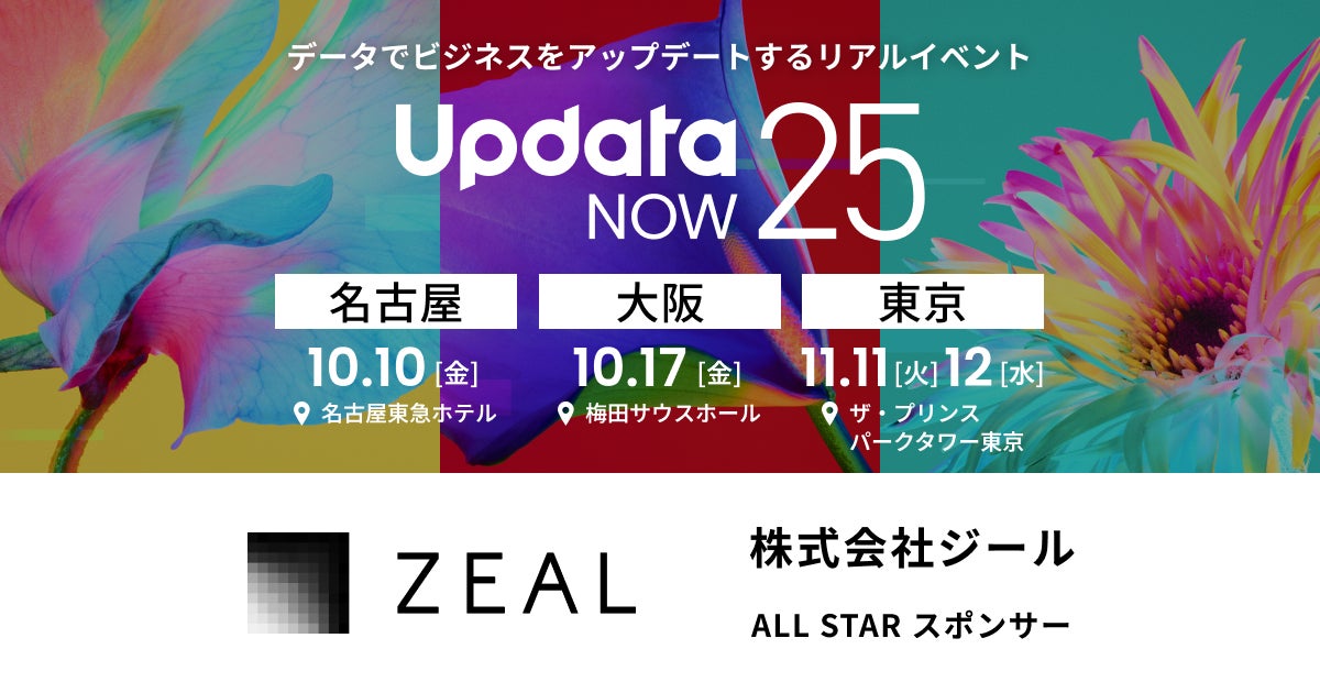 アバントグループで、デジタルトランスフォーメーション(以下「DX」)推進事業を展開する株式会社ジール(本社:東京都品川区、代表取締役社長:沼田 善之、以下「ジール」)は、2025年10月10日(金)名古屋、17日(金)大阪、11月11日(木)、12日(金)東京で開催するウイングアーク1st株式会社主催の「UpdataNOW25」に出展します。11日には、ジール社員がスポンサーセッションに登壇し、データドリブン経営推進に向けたデータ統合・分析基盤の構築を実現されたお客様とともに成功事例を紹介します。