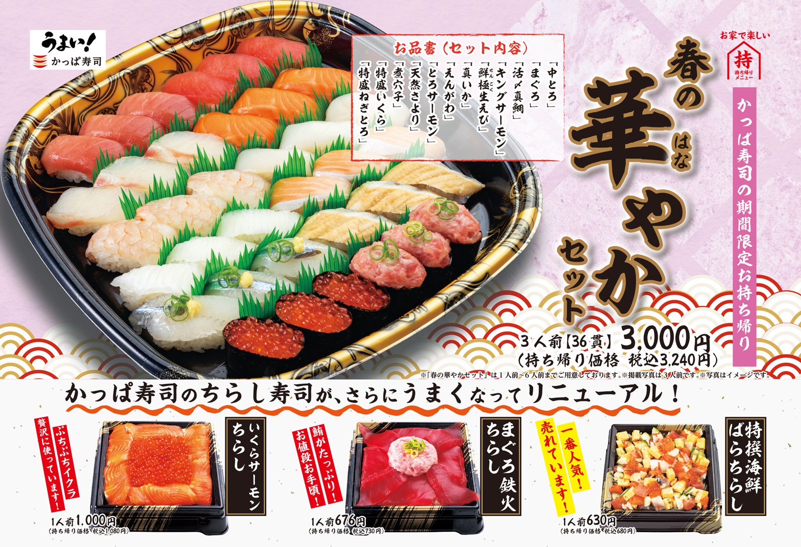 卒業式や入学式など、ご家族が集うお祝いごとが多いこのシーズンに、是非ご自宅でも春の“うまい!”かっぱ寿司をお楽しみください。