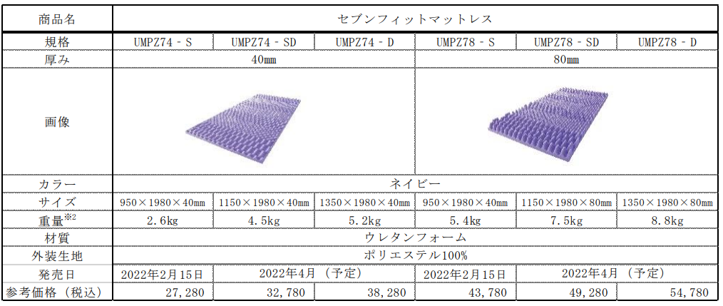 7つのゾーニングで体圧分散質の良い睡眠をサポート「セブンフィットマットレス」発売