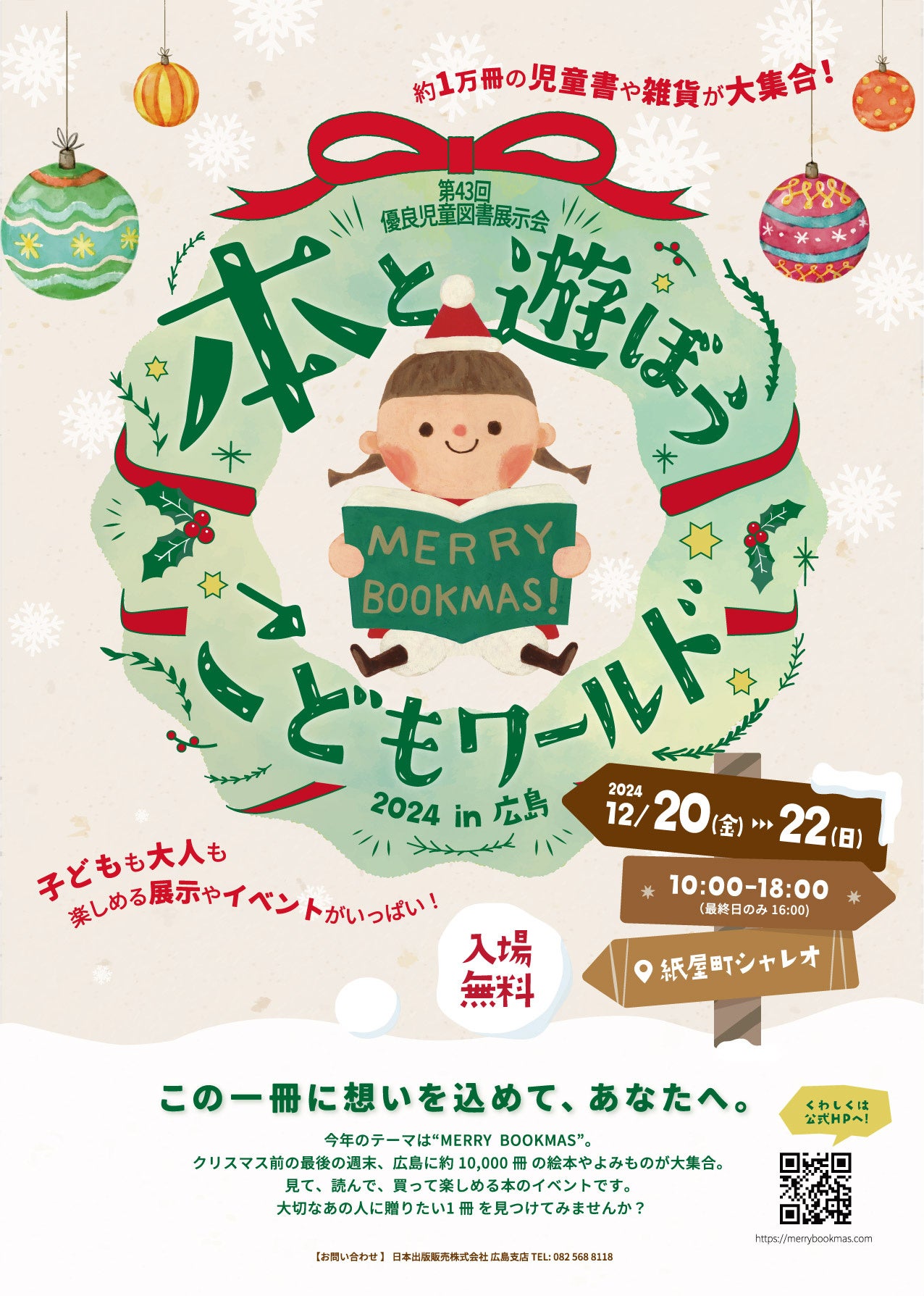 広島会場は、今年で4回目の開催となります。昨年同様、広島市中区中心部に広がる地下街「紙屋町シャレオ」にて、分散型の展示を行います。オリジナルコンセプトとして「MERRY BOOKMAS!」を掲げ、本の展示・販売、地元団体による読み聞かせ、著者のトークイベント、協賛企業とのコラボブースなど数々の企画を開催し、クリスマスシーズンにぴったりなイベントを届けます。