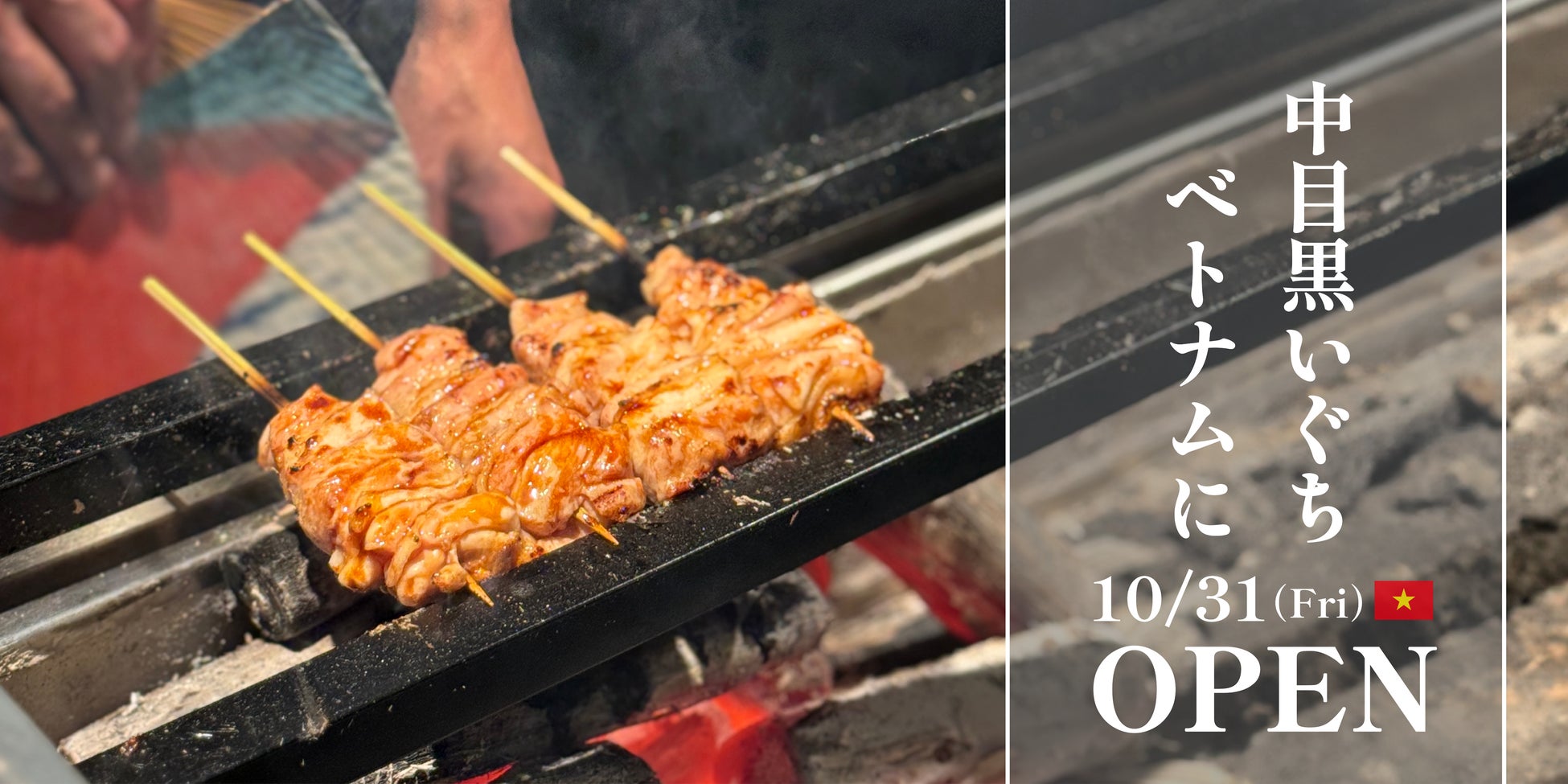 2025年10月31日、ホーチミン市1区・Pasteur通りに「中目黒いぐち」がオープンします。焼き台に立つのは、日本の中目黒いぐちで特定技能制度のもと修業を重ねてきたベトナム人スタッフです。