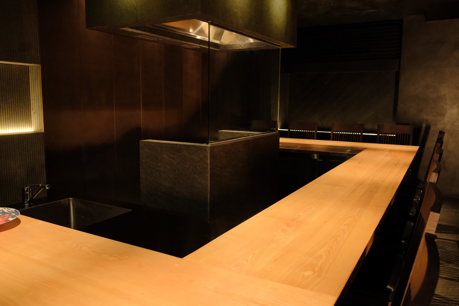 店内はカウンター10席のみ。木材を基調とした内装に、柔らかな照明、視線・音・距離感まで設計された空間が広がります。