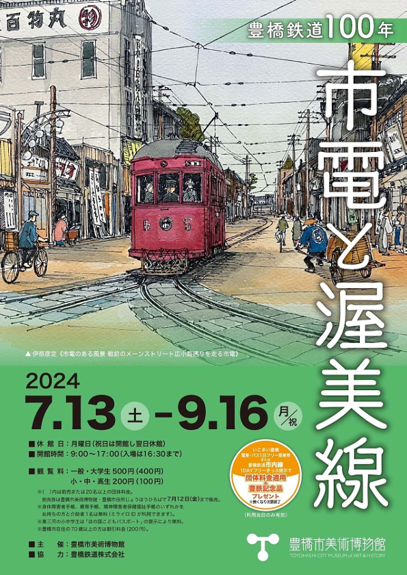 関連イベントとして、7月13日(土)午後2時から、豊橋市出身の鉄道アーティスト小倉沙耶さんと豊橋鉄道社員によるトークイベントを開催。定員は50人(申し込み順)。7月27日(土)午後2時からは、びはく講座「戦前の市電と豊橋」。定員50人(申し込み順)。8月31日(土)には、市電に乗りながら落語を楽しむ「落語電車」が走ります。定員30人(申し込み順)で、8月6日(火)から申し込みを受け付けます。すべての申し込みは市美術博物館ホームページから受け付けます。