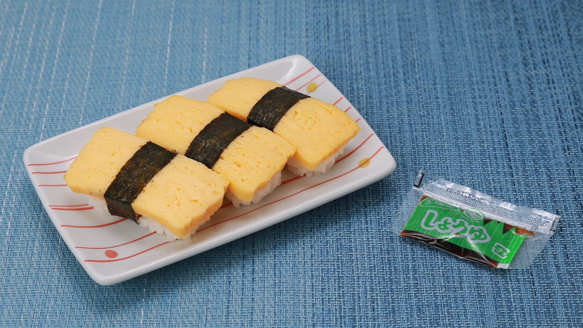 定番人気の甘めの玉子焼きがのったにぎり寿司を3貫つめた小型寿司パックです。