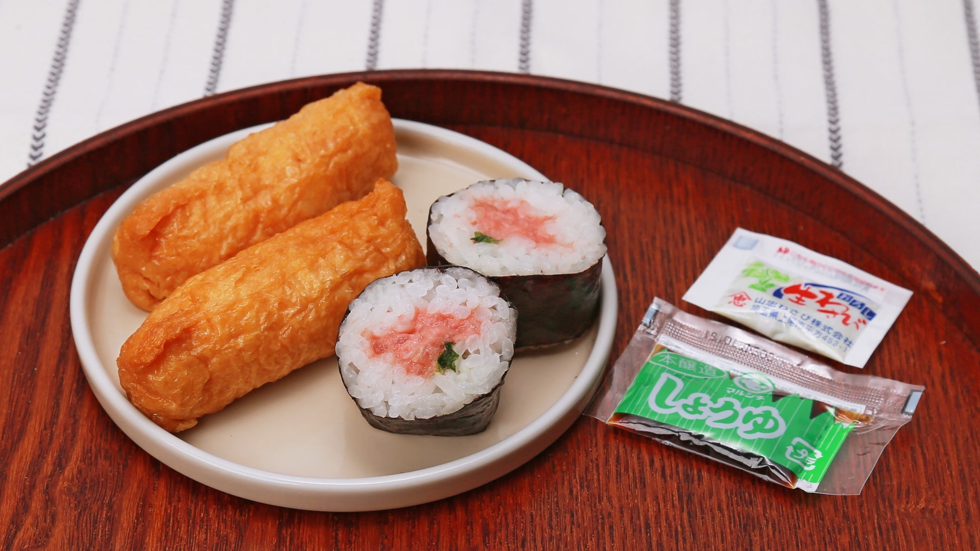 ねぎとろ中巻2巻といなり2個を詰め合わせた小型寿司パックです。