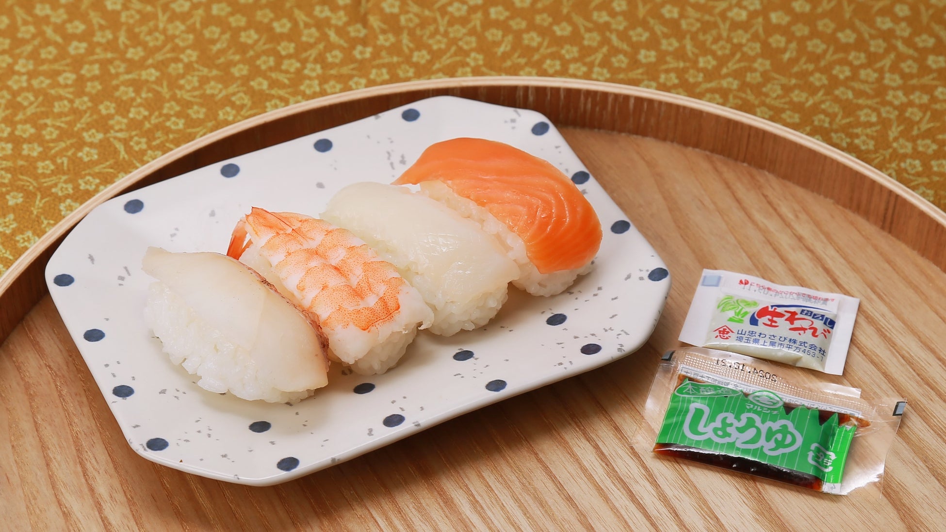サーモン、いか、海老、炙り赤魚が1貫ずつ入ったアソートパックです。