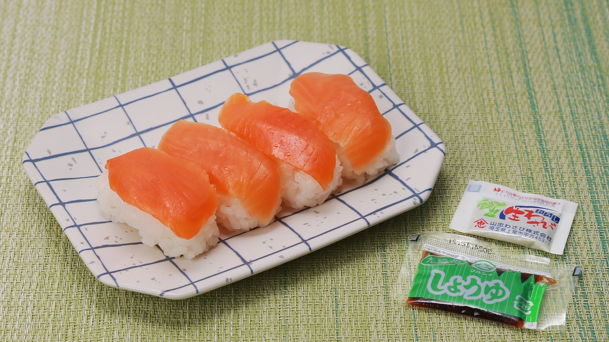 お子様からも大人気!寿司ネタ定番のサーモンを4貫つめた小型寿司パックです。