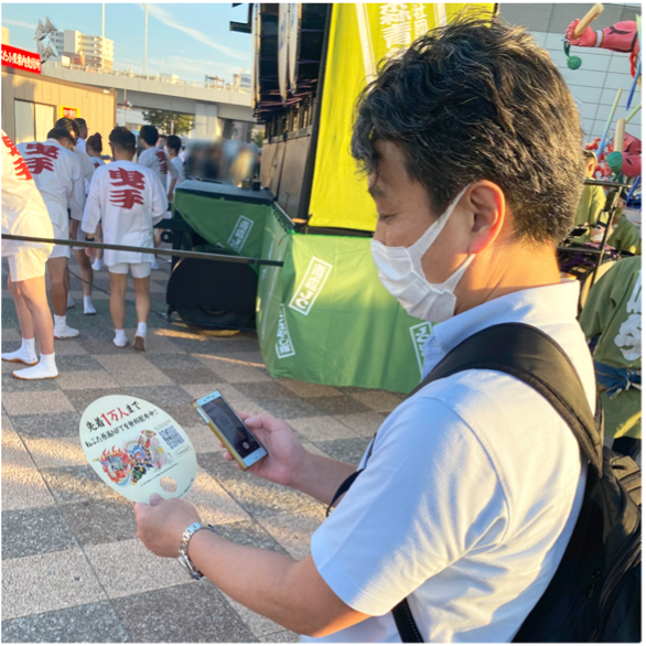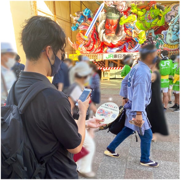 青森ねぶた祭にて『市川團十郎白猿 不動の睨み』の原画データNFTを取得する様子