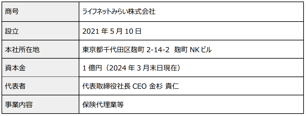 ライフネットみらいの会社概要