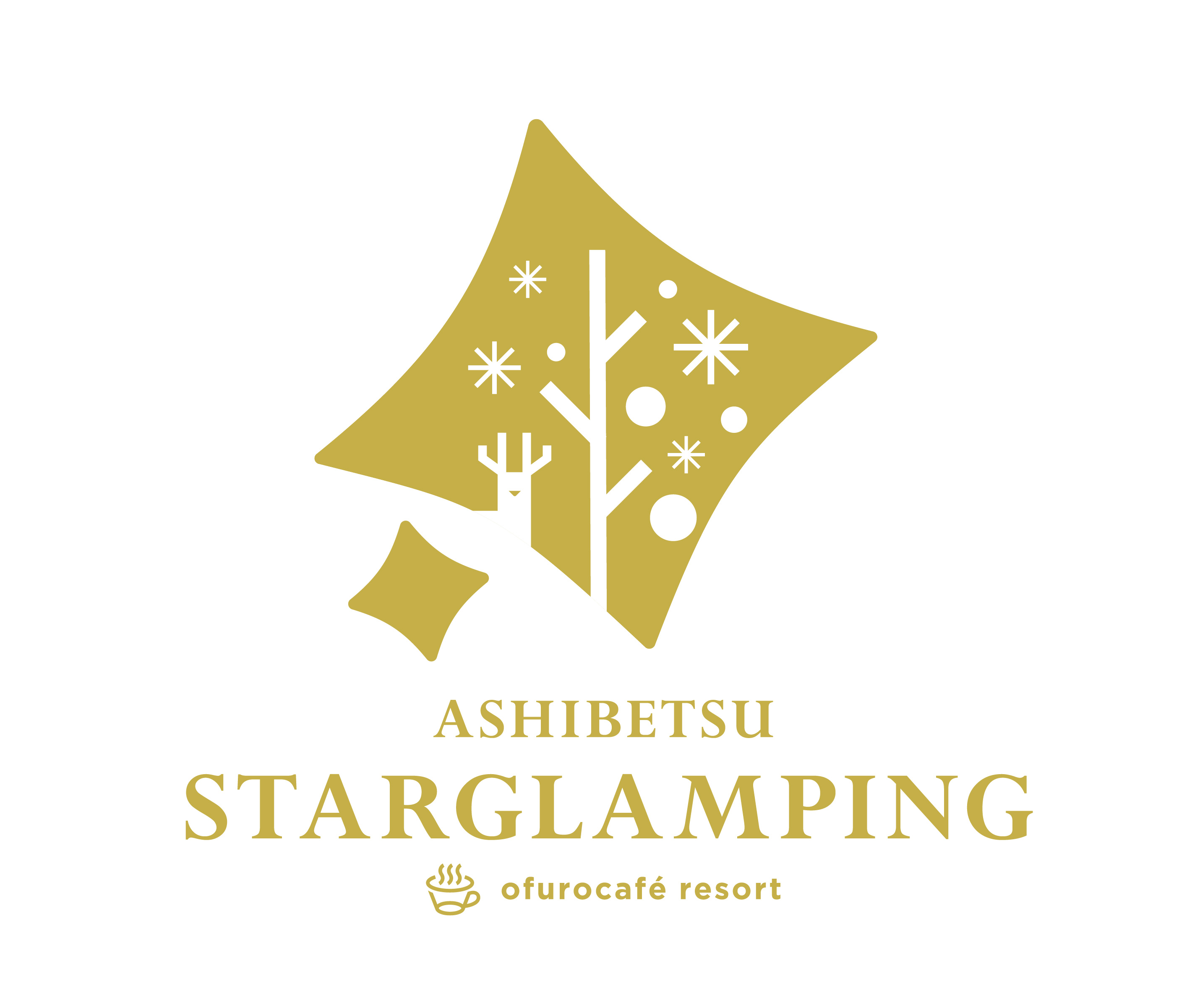 北海道の形と「星の降る里 芦別」の星をモチーフに、北海道の大地・食・自然を感じられるグランピング体験を表現しています。