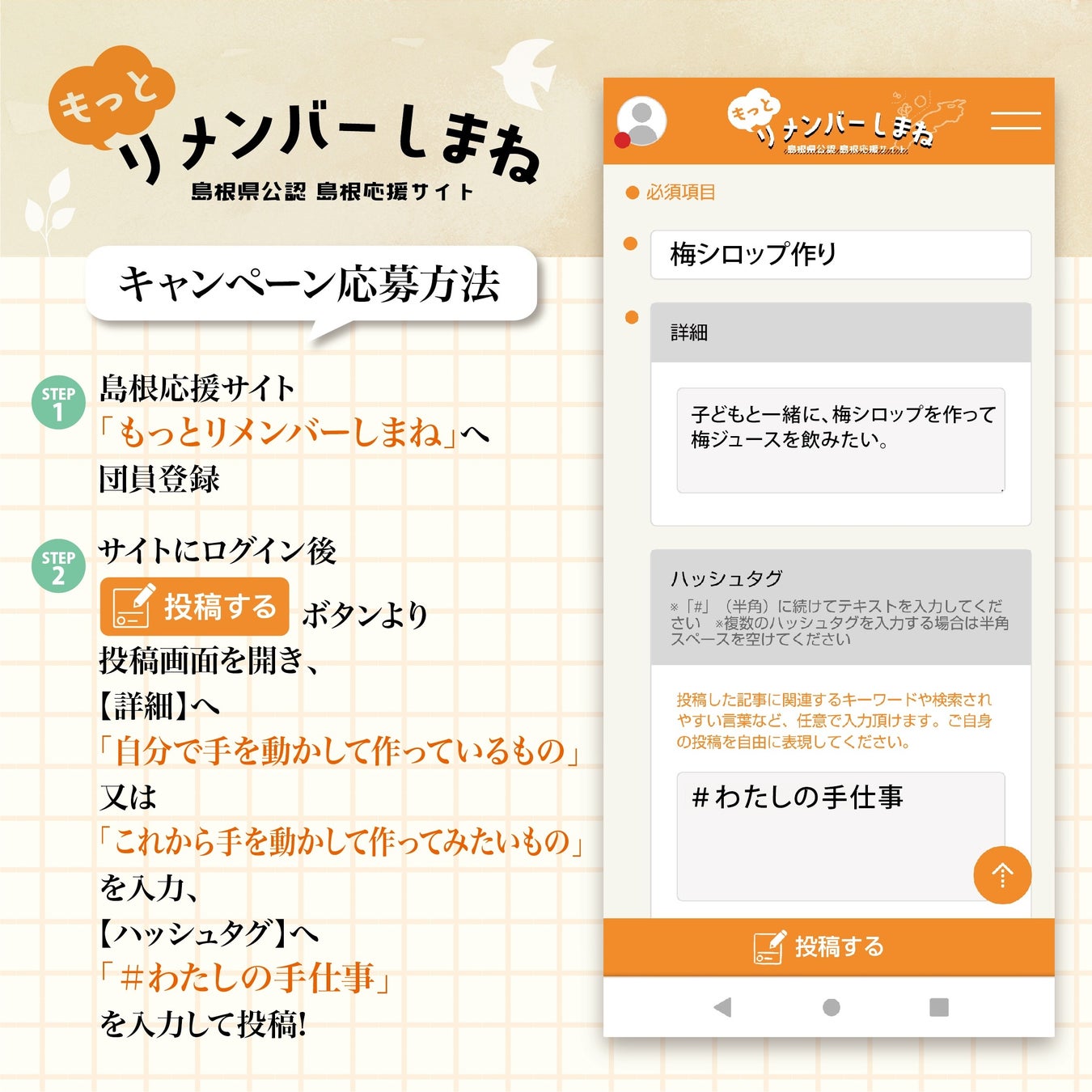 『#わたしの手仕事』のハッシュタグをつけて投稿!