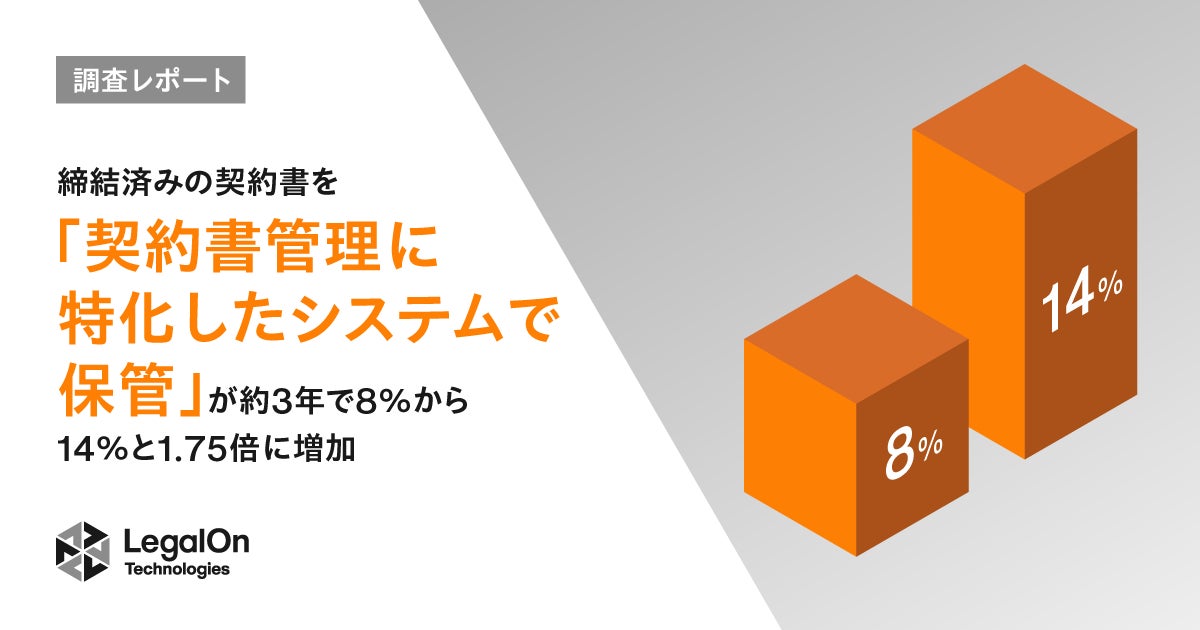 【LegalOn Technologies調査レポート】締結済みの契約書を「契約書管理に特化したシステムで保管」が約3年で8%から14%と1.75倍に増加。