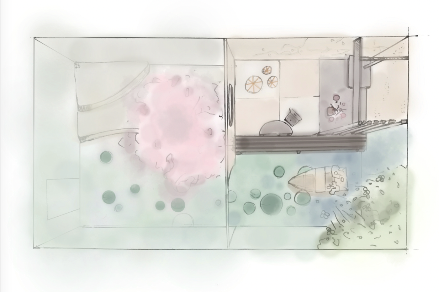 1つのスペースの中に段差や質感の違いなどお子様の興味をひく動きのあるデザインになっており、和の空間でありながらかしこまったものだけでなくお子様の自然な動きや表情を引き出します。