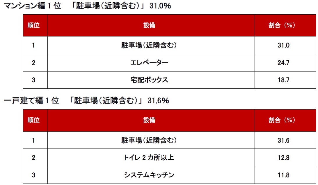 ~マンション編・一戸建て編ともに1位は「駐車場(近隣含む)」~