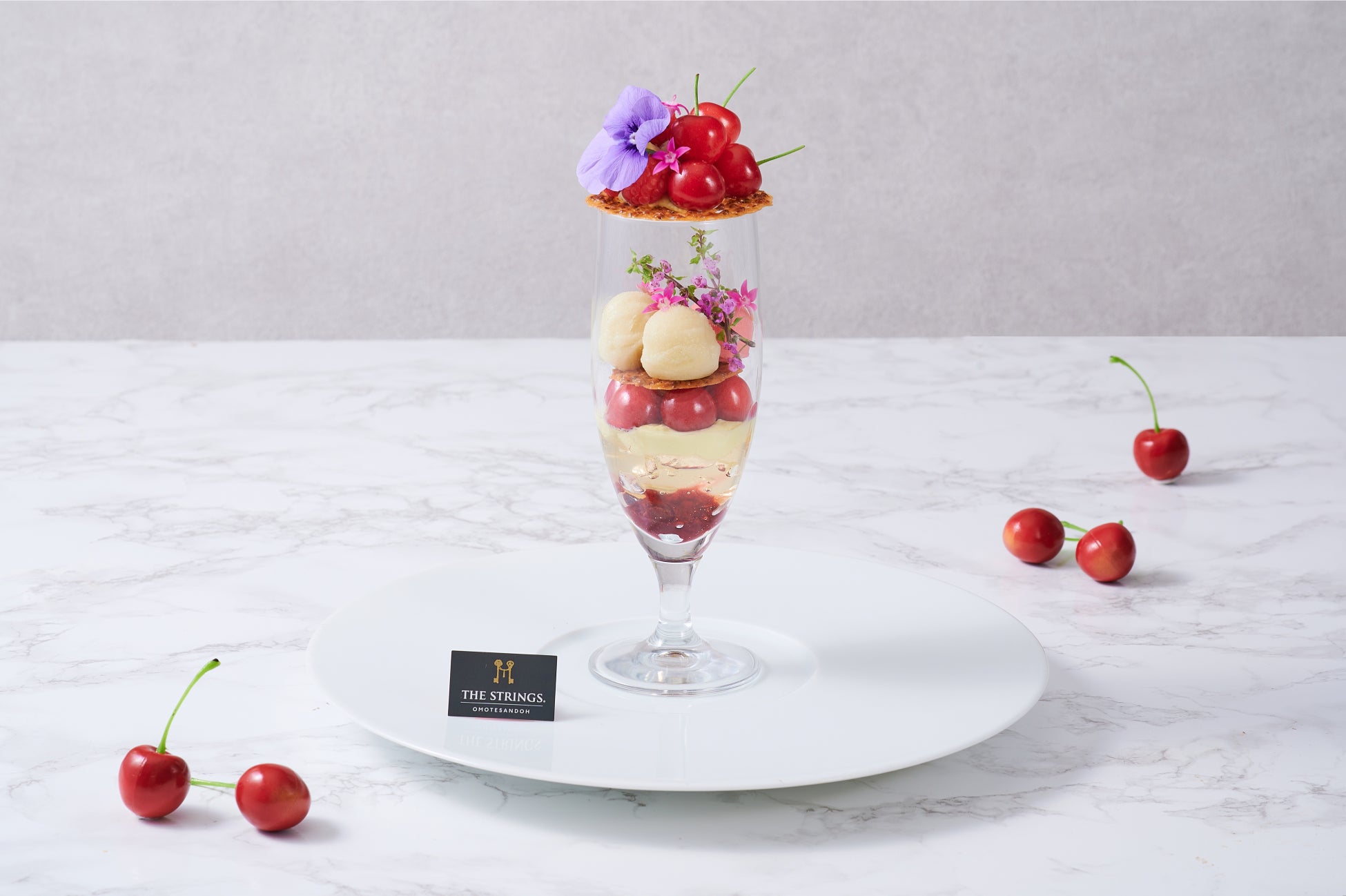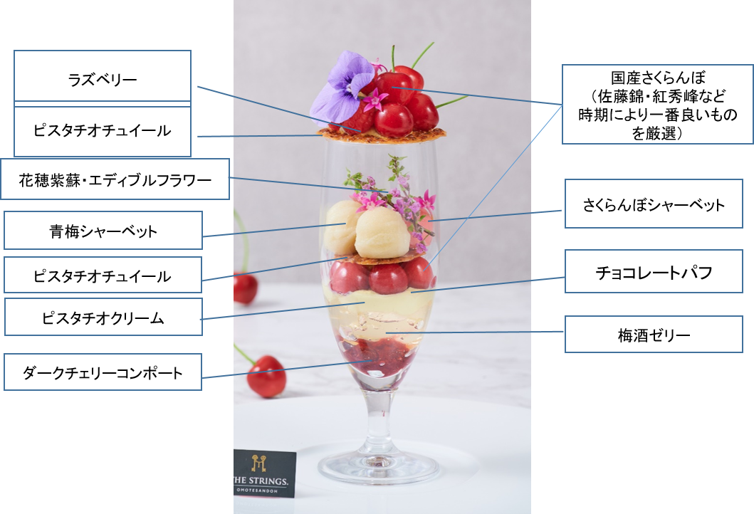 みずみずしくフレッシュなさくらんぼの甘みがより引き立つよう、梅のシャーベットとゼリーをアクセント加え、丁寧に層を重ねました。