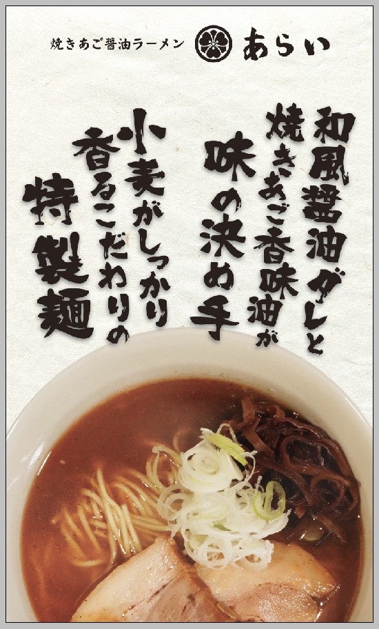 本格焼きあご醤油が大人気の“ラーメンあらい”!女性向けに小盛りラーメンはじめました!