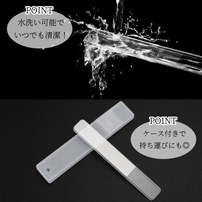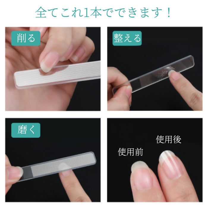 爪の形や長さを整えるのに便利なガラスヤスリの3点セット。