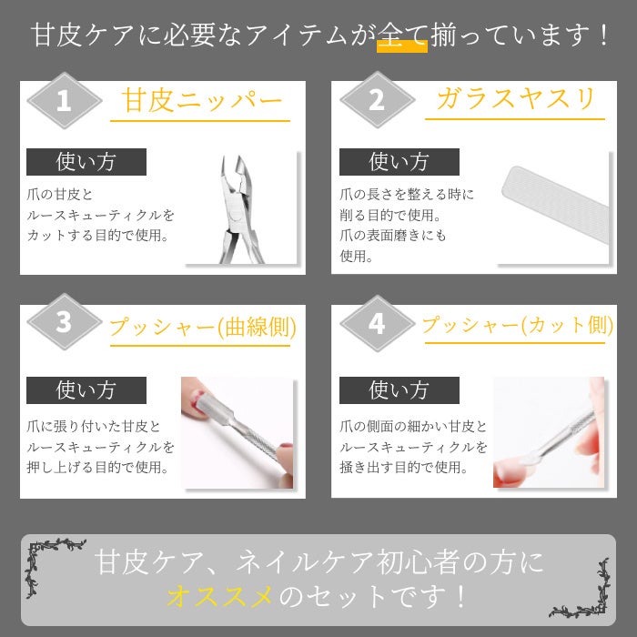 甘皮処理に便利なキューティクルニッパー・プッシャー、