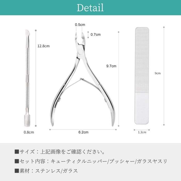 セット内容:キューティクルニッパー/プッシャー/ガラスヤスリ