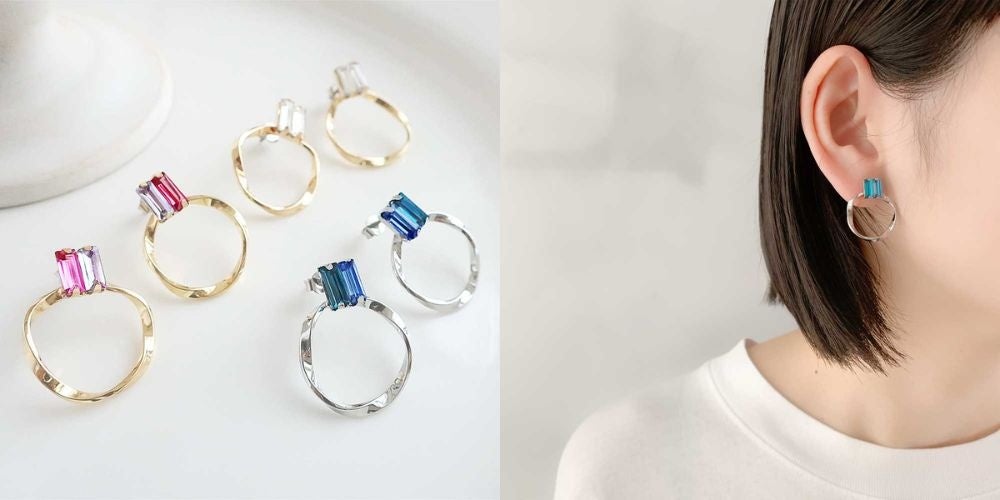 商品名:バイカラービジュー×ツイストサークルチタンピアス
