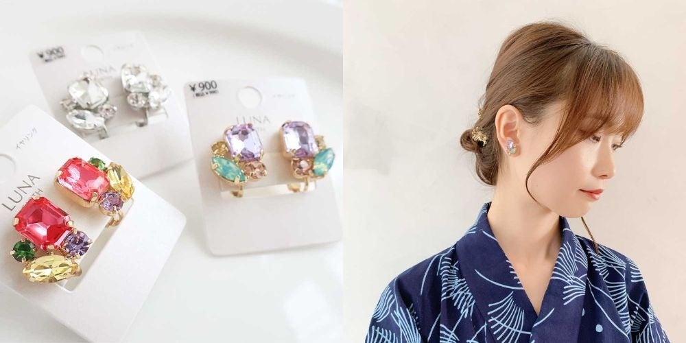 浴衣の存在感に負けない、ビジューのイヤーアクセサリーのご紹介です。