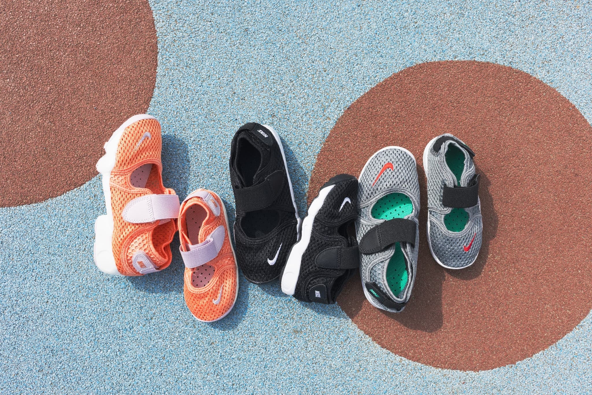 今回のフェアでは、猛暑の日々にもぴったりなNIKEのキッズサマーシューズがラインナップ。海や川、プールなどの水辺でも全力でアクティブに遊べるような、機能的なモデルを取り揃えています。
