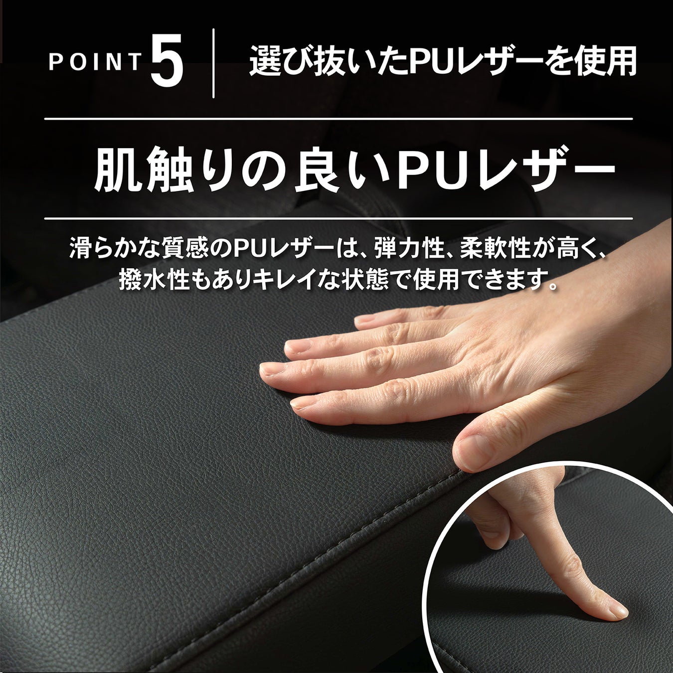 滑らかな質感のPUレザーは、弾力性、柔軟性が高く、撥水性もありキレイな状態で使用できます。