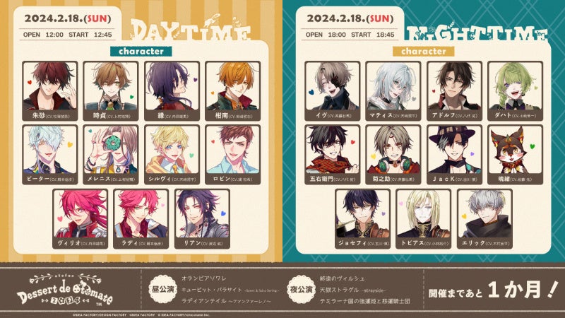 アイディアファクトリー株式会社(代表取締役社長:佐藤 嘉晃/所在地:東京都豊島区)の女性向けゲームブランド「オトメイト」は、2024年2月18日(日)に開催されるオトメイトファンイベント「Dessert de Otomate 2024」(通称「オトファン2024」)の物販情報第一弾を本日公開いたしました。