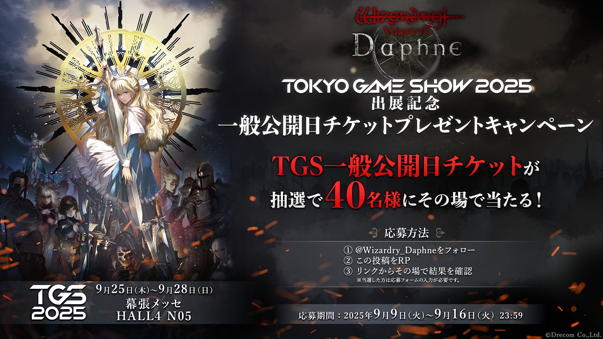 『Wizardry Variants Daphne』公式X(旧Twitter)にて、抽選で40名様にTGS一般公開日チケットが当たるフォロー&リポストキャンペーンを実施いたします。