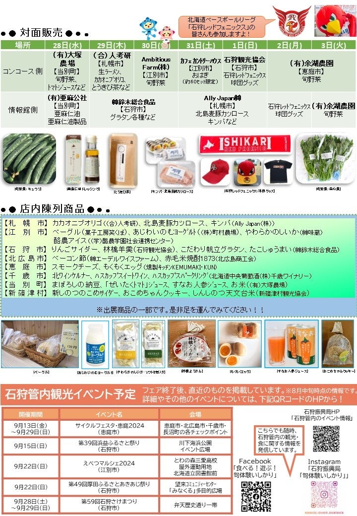 様々な石狩地域の「美味しい」が勢揃いする特産品販売をメインに、観光情報も発信します!