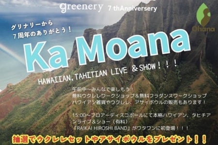 \本気のハワイ&タヒチがやってくる!/greenery 7周年イベント『Ka Moana』WHATAWONで開催!五感で感じる極上の体験を。