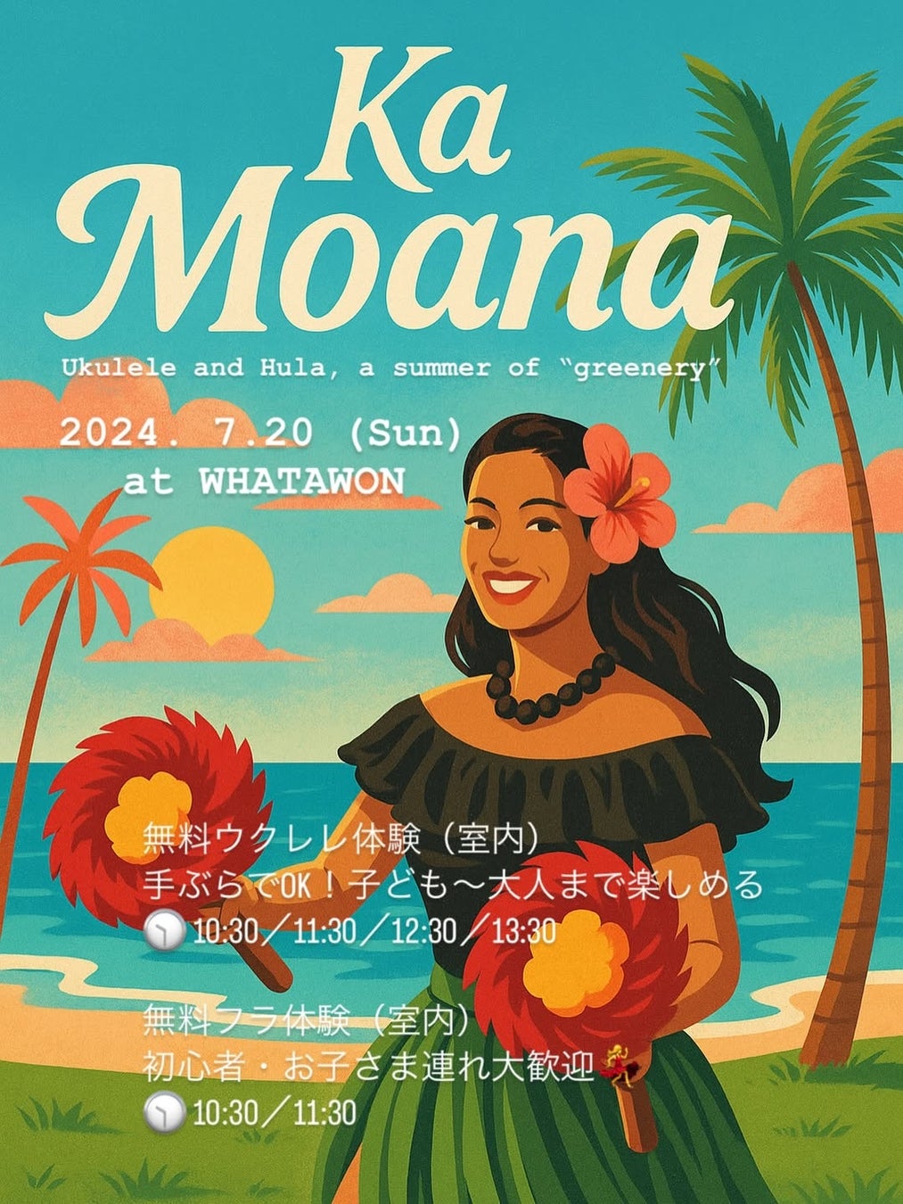 7月20日(日)@WHATAWON|フラ&ウクレレの無料体験から、限定フード、豪華アーティストのライブ&ショーまで!南国の風を感じる特別な1日。