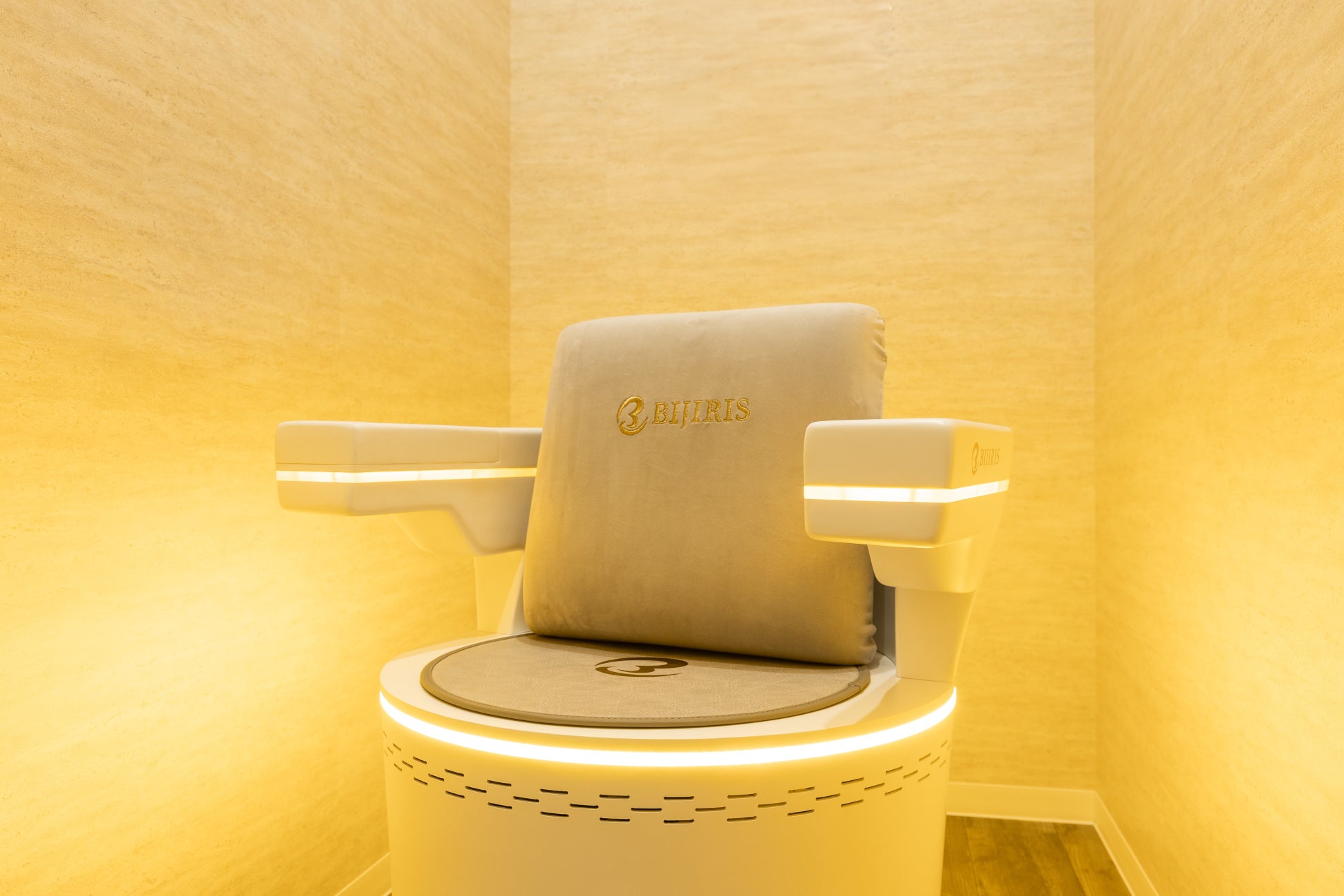 服を着たまま座るだけで「筋肉+脂肪」両方にアプローチできます。なかなか鍛えることのできない骨盤底筋や下半身を電磁パルスの刺激で座るだけで鍛えることができる美容マシンです。