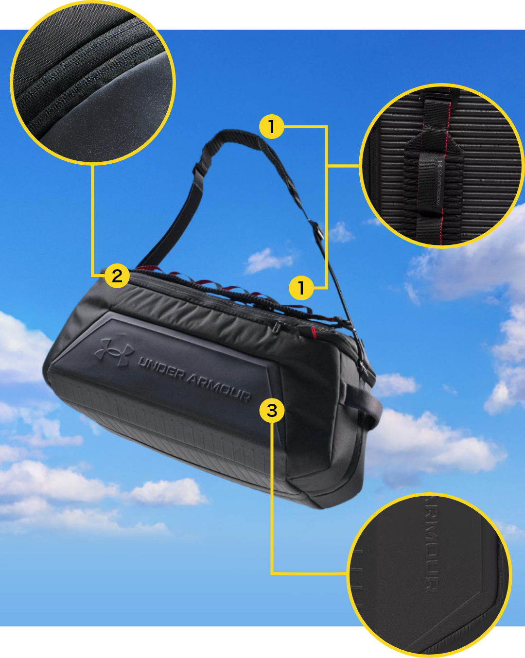 UAストームテクノロジーとコーディングジッパーが、土砂降りの雨でも大切な荷物を守ります。