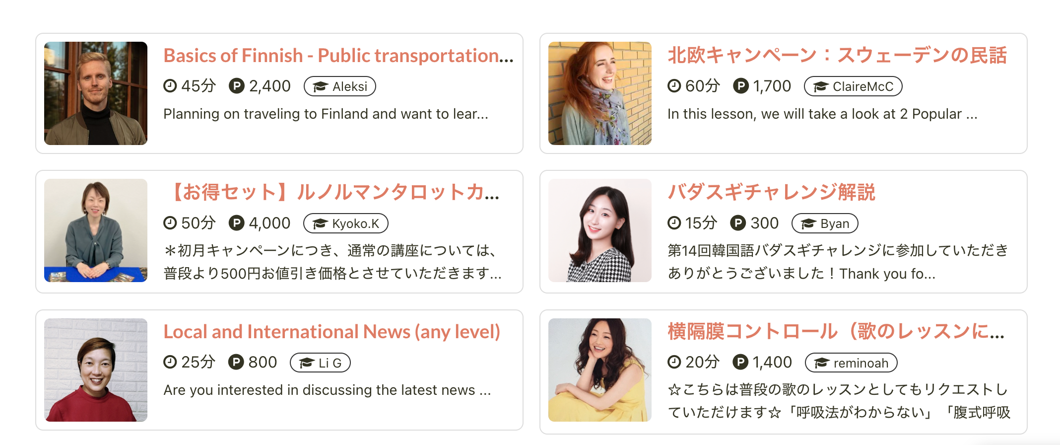 カフェトークのオンラインレッスンを探す:https://cafetalk.com/lessons/?lang=ja