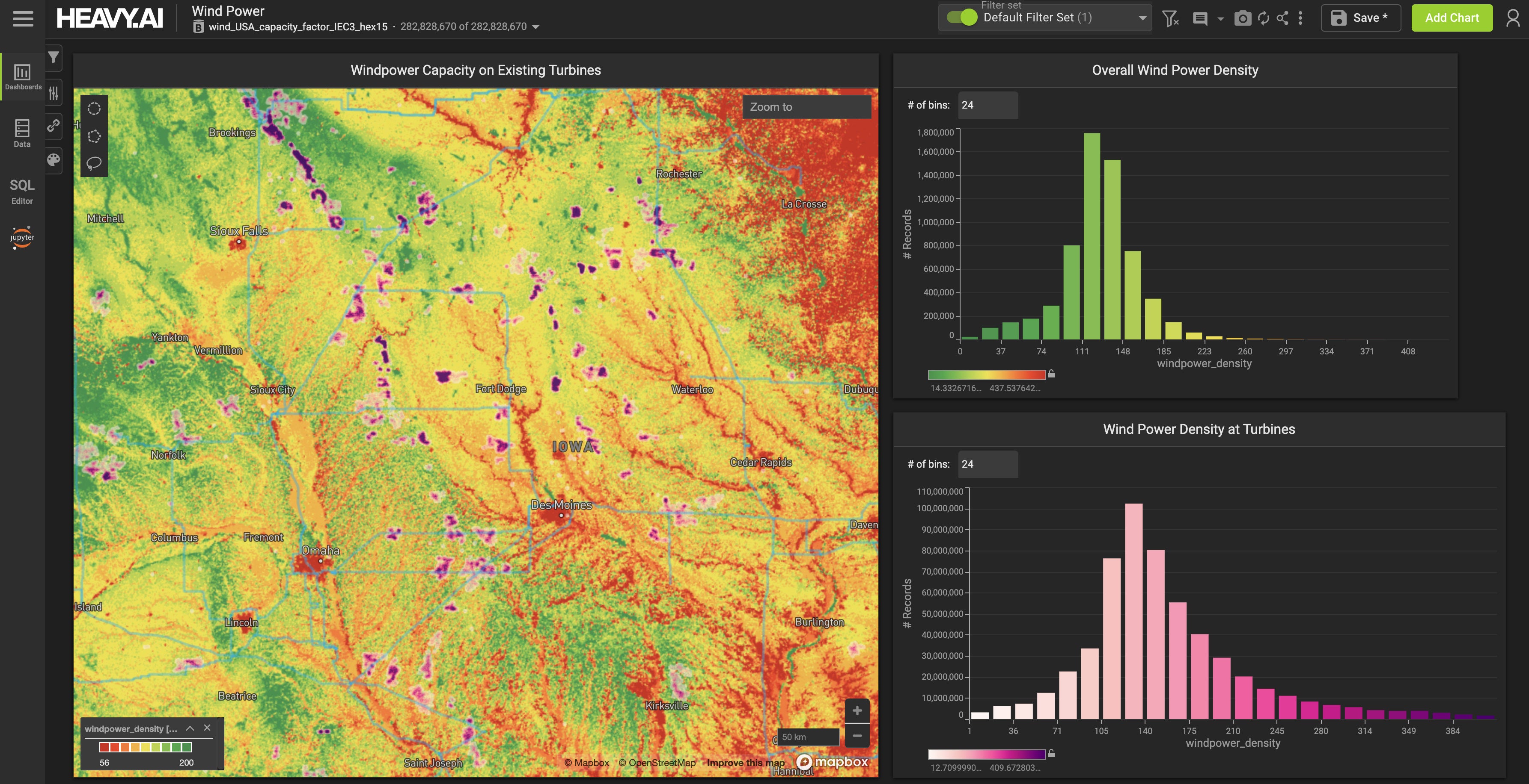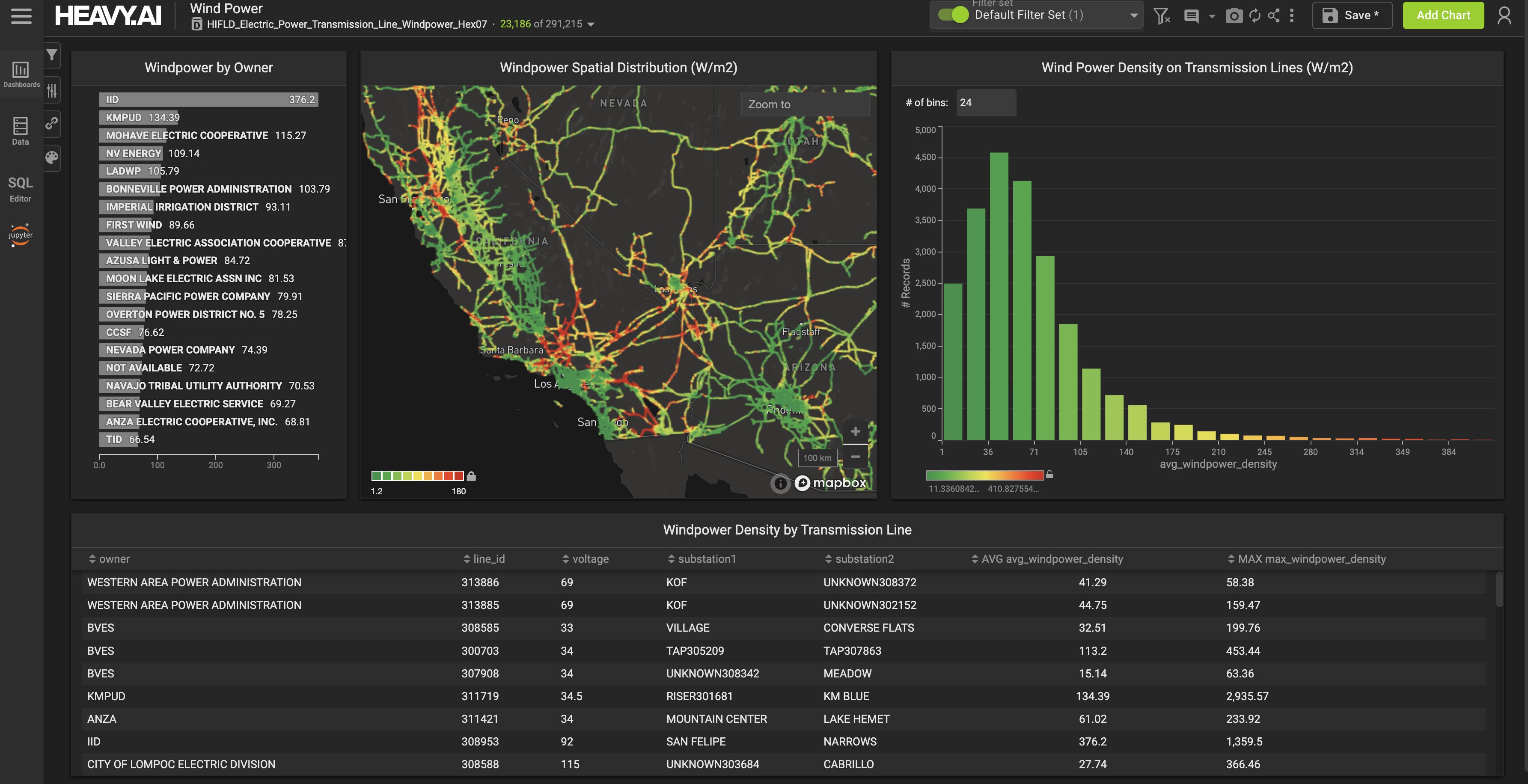 これまで、HEAVY.AIは、技術者でないユーザーに対して、膨大なデータセットをインタラクティブかつリアルタイムで迅速に可視化、マッピング、フィルタリングする機能を提供してきました。Heavy 7.0では、コーディング不要の結合機能が追加されたことで、ユーザーはデータから、迅速にかつ視覚的な洞察を得ることができるようになりました。結合は、Heavy Immerseのダッシュボードから直接指定でき、GPUデータベースの速度により、インデックスやダウンサンプリングを必要とせず、数十億レコードのデータセットに対してインタラクティブな速度で実行できます。SQLを記述することなく大規模なデータセットの融合を実行できるため、幅広いユーザーに対して複雑な知見へのアクセスが可能となります。