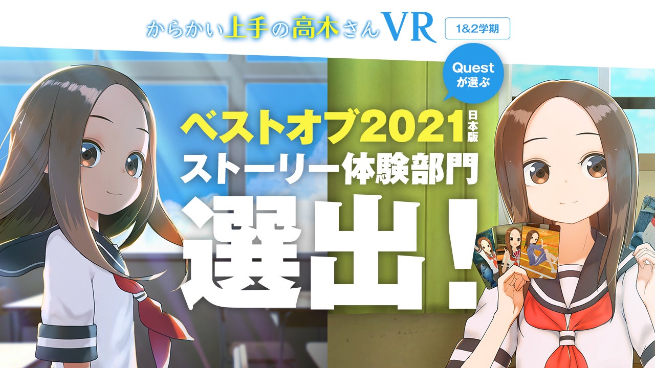 小学館の月刊漫画誌「ゲッサン(月刊少年サンデー)」にて好評連載中の「からかい上手の高木さん」。中学校の隣の席の高木さんに、何かとからかわれる少年・西片の目線で、高木さんによる色々なからかいを疑似体験できる次世代VRアニメを小学館と企画・製作。Meta社で発表された「ベストオブ2021年 日本版」のストーリー体験部門に選出。
