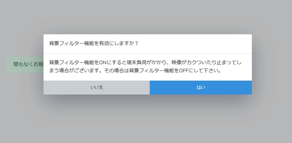 当機能を設定しておくとSOKUMEN入室時に背景フィルターを使用するかの確認ウィンドウが表示されます。テレワーク等でご自宅の室内を映したくない場合に便利な機能です。